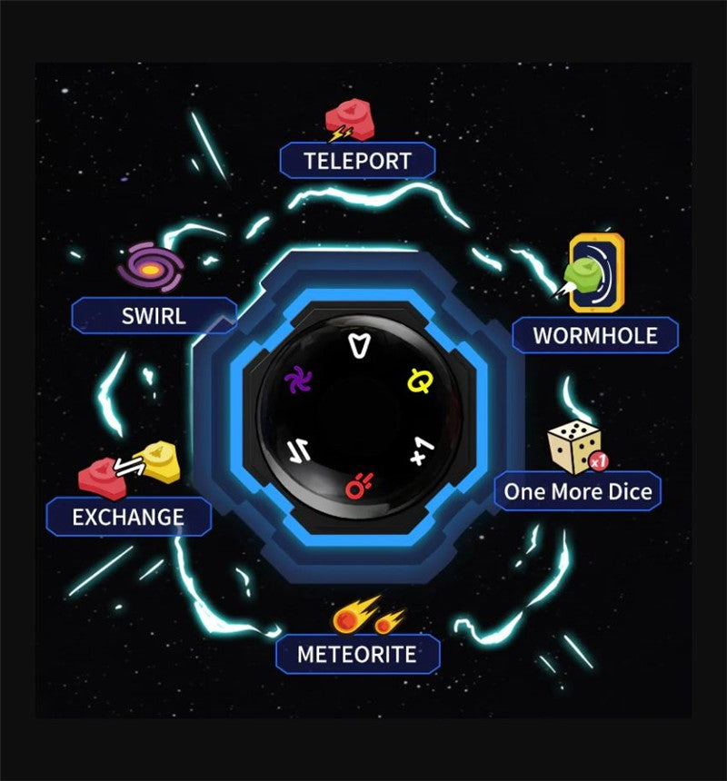 ¡Despega hacia la diversión con Super Ludo de Giiker! Un juego de mesa con temática espacial que reinventa el clásico de toda la vida. Usa la bola de cristal para lanzar los dados o activar uno de los 6 eventos del universo, capaces de cambiar por completo el curso de la partida. ¿Te atrapará un agujero negro o conseguirás un impulso galáctico?