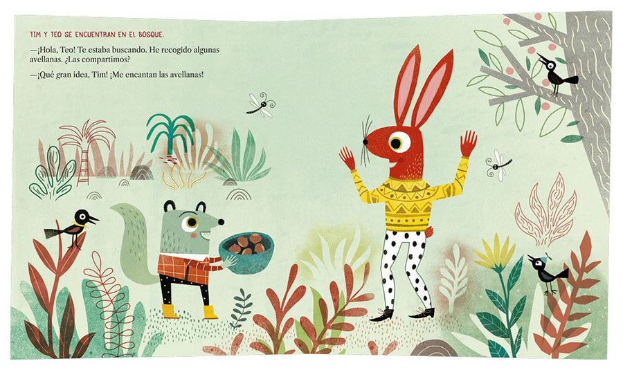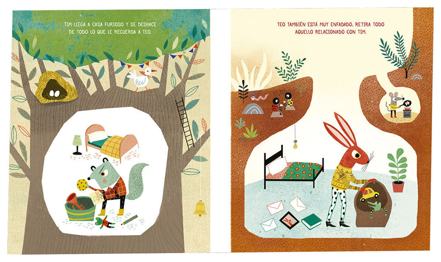 Un libro en cartoné de 36 páginas que narra la emotiva historia de Tim y Teo, dos amigos que aprenden sobre la amistad y la gestión de la frustración.