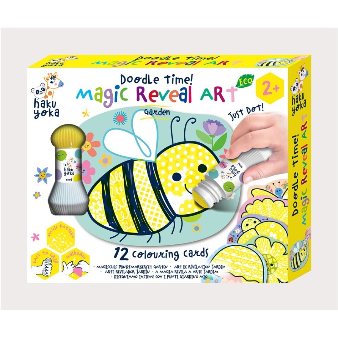 Set creativo “Arte de Puntos Mágicos” de Haku Yoka para niños desde 2 años. 12 tarjetas mágicas con patrones ocultos y marcador lavable. Actividad sensorial y educativa.