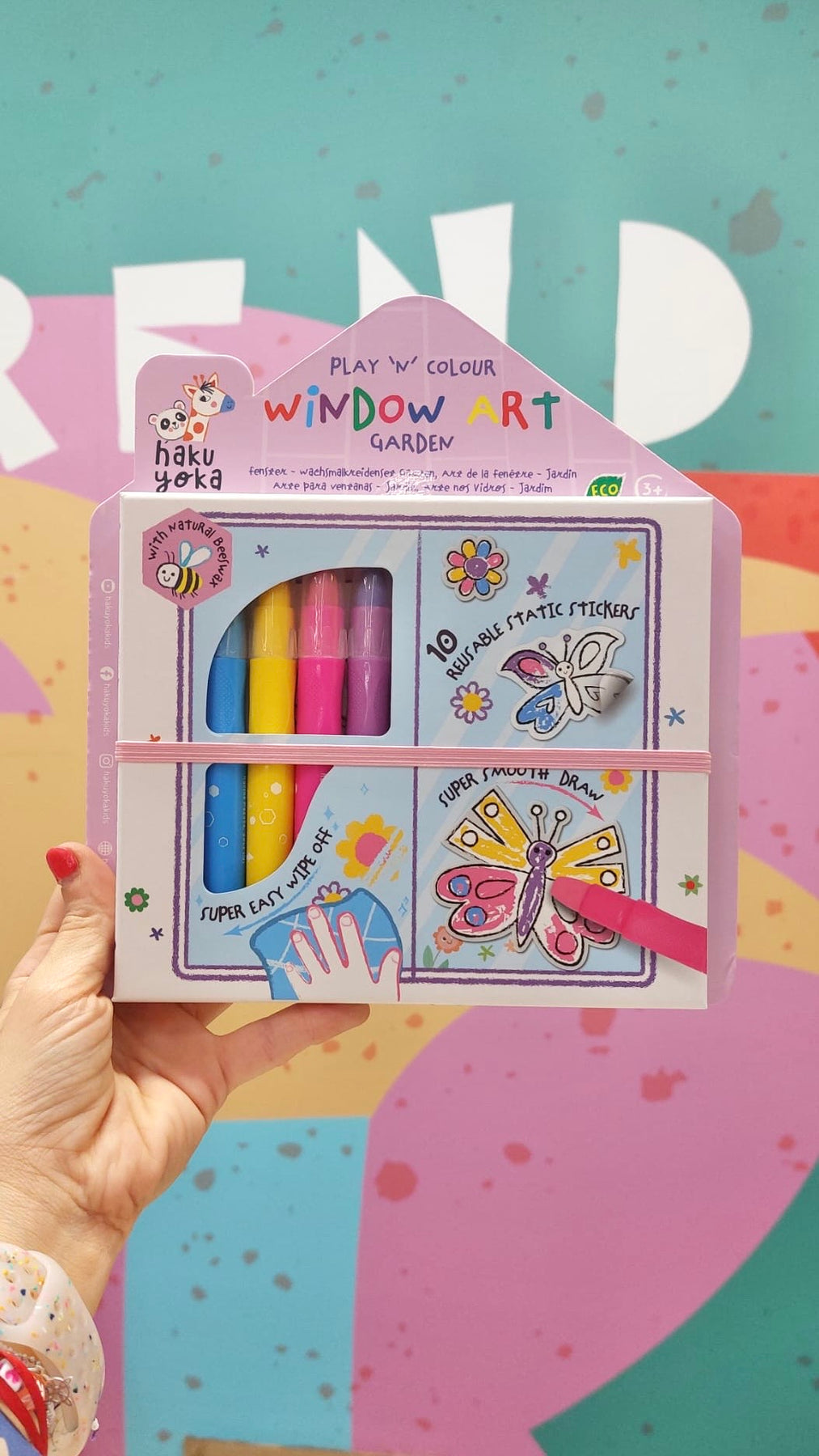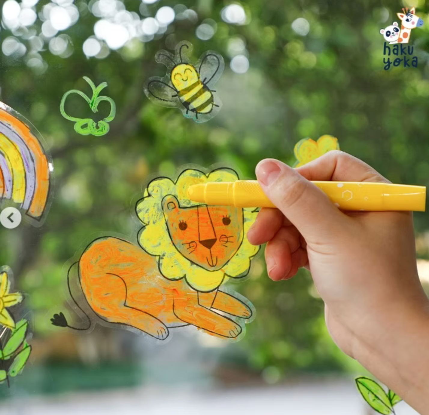 El set Arte Ventana - Haku Yoka ofrece una forma divertida y limpia de decorar ventanas con arte. Incluye pegatinas reutilizables con motivos temáticos ("Animales de la jungla" y "Jardín de mariposas") y ceras especiales que permiten pintar sobre ellas. Los niños pueden crear diseños vibrantes y originales, y si quieren cambiarlos, solo necesitan mojar la pegatina para borrar la pintura y volver a empezar. Además, si pintan directamente sobre el cristal, la pintura se eliminan sin dejar residuos. Esta actividad estimula la creatividad y les hace sentir como verdaderos artistas en su entorno diario. Ideal para usar una y otra vez sin ensuciar ni dañar la superficie.
