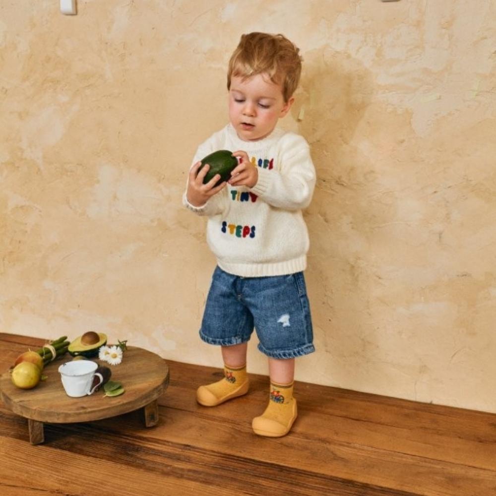 Attipas se ajusta completamente al pie del bebé otorgándole así una completa flexibilidad y adaptabilidad tanto en suela como en la parte del calcetín.