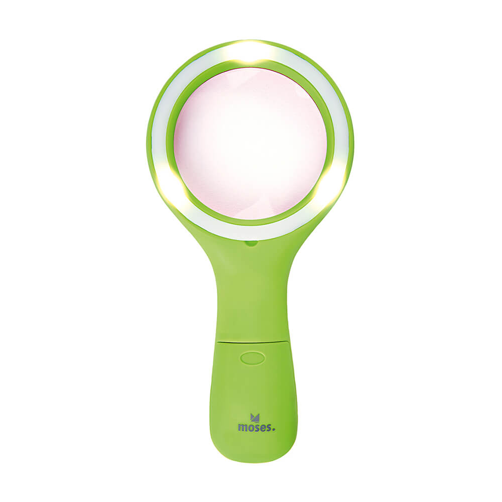 La Lupa con Luz de Moses, de la colección Bichos, es la herramienta ideal para los pequeños exploradores que quieren descubrir el mundo de la naturaleza. Esta lupa tiene una superficie de goma que la hace fácil de sujetar y resistente a los golpes. Con un aumento de 2x, los niños podrán observar en detalle insectos, hojas o flores. La luz LED integrada es perfecta para explorar en la oscuridad o para iluminar los objetos de forma más clara. Con sus cómodas medidas de 9 x 18.6 x 2.5 cm, es el accesorio perfecto para cualquier aventura al aire libre.
