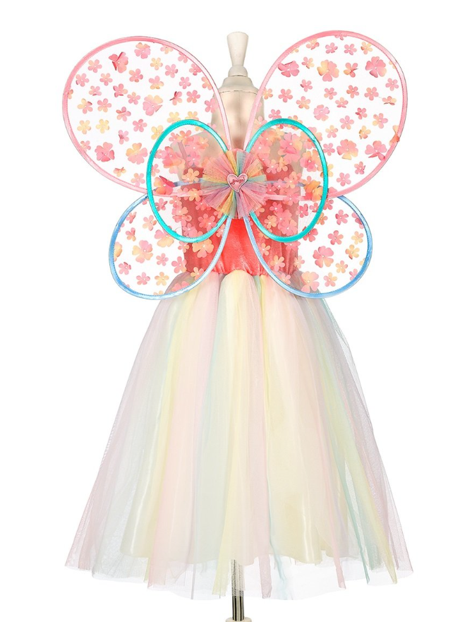 Cada detalle ha sido pensado para crear una experiencia mágica y envolvente. Las alas, ligeras y resistentes, se complementan a la perfección con el diseño del vestido, creando un look de hada completo y lleno de color que hará volar su imaginación.