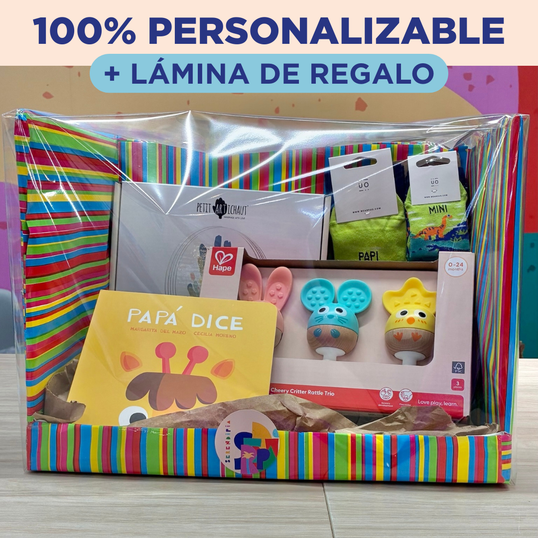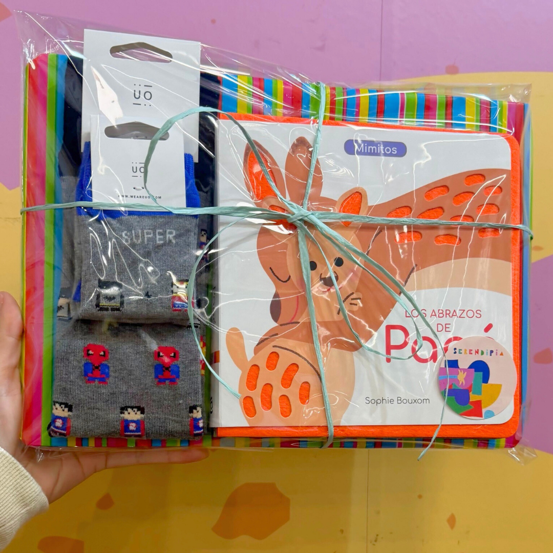Puedes personalizarlo eligiendo entre cuento, calcetines a juego, marco para manos o fotos, cojines, zapatillas de estar en casa… Tú decides qué incluir y nosotros lo preparamos con mucho cariño.