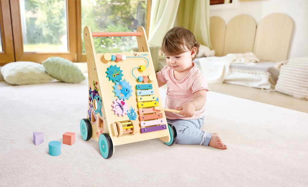 El Andador de Madera Iti es mucho más que un simple andador: es un centro de actividades completo que acompaña a tu pequeño en sus primeros pasos mientras estimula su desarrollo cognitivo y motor