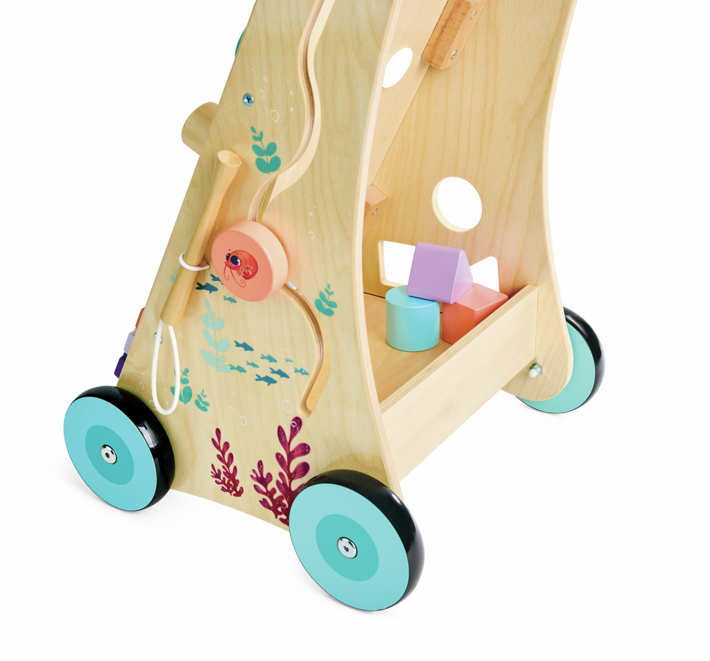 El Andador de Madera Iti es mucho más que un simple andador: es un centro de actividades completo que acompaña a tu pequeño en sus primeros pasos mientras estimula su desarrollo cognitivo y motor. Cuando se cansen de explorar el mundo caminando, tendrán 6 actividades diferentes para seguir aprendiendo y divirtiéndose.